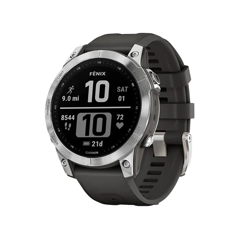The Garmin fēnix 7 Multisport GPS Watch in Silver with Graphite Band is built for adventure and performance. It features advanced GPS tracking, rugged durability, and long battery life. Perfect for outdoor sports, training, and everyday wear.