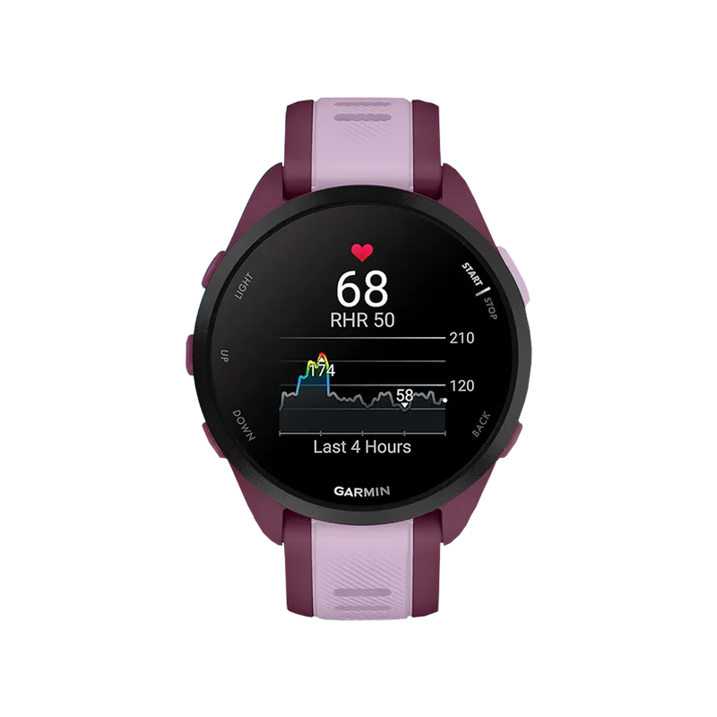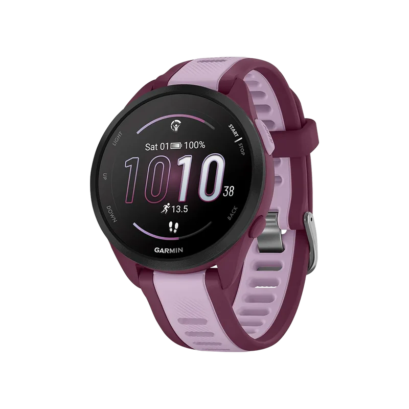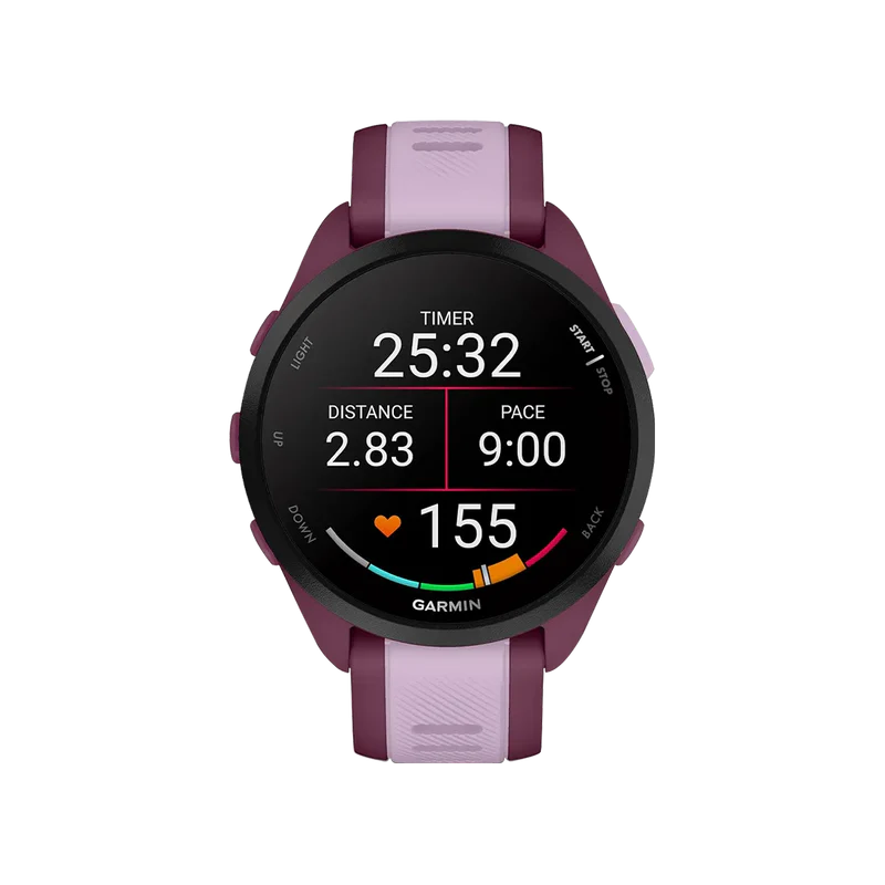 The Garmin Forerunner 165 Music in Berry features a vibrant AMOLED display, built-in music storage, and advanced training metrics. Designed for runners, it offers recovery insights and seamless music playback right from your wrist.