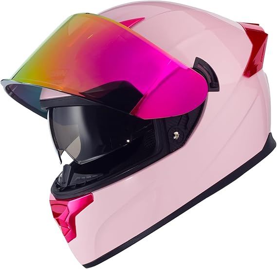 - DUAL VISOR SYSTEM: Features an advanced dual visor design with an iridescent outer shield and internal sun visor for optimal visibility in varying light conditions