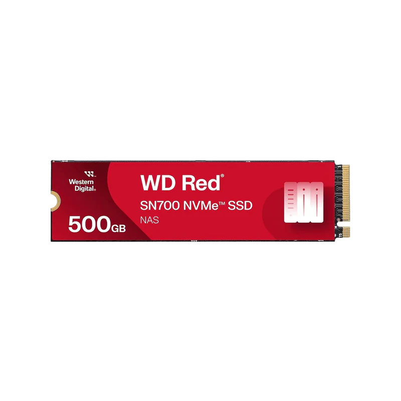 The Western Digital 500GB WD Red SN700 NVMe SSD is purpose-built for NAS environments. With Gen3 PCIe performance, M.2 2280 form factor, and speeds up to 3,430 MB/s, it offers fast, reliable caching and storage for multi-user workloads in 24/7 operations.