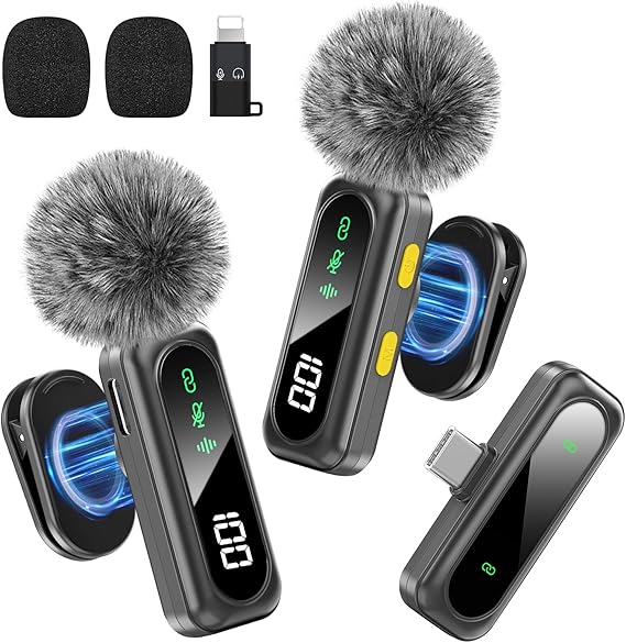 • 【Enhanced Audio Control】This wireless microphone delivers crystal-clear audio with professional-grade sound reproduction, ensuring rich bass and crisp highs for studio-level recording. The one-tap mute button allows instant silence during calls or recordings—ideal for live streaming and confidential meetings. The receiver includes both USB-C and Lightning adapters, making it widely compatible with iPhone, iPad, Android, and more.